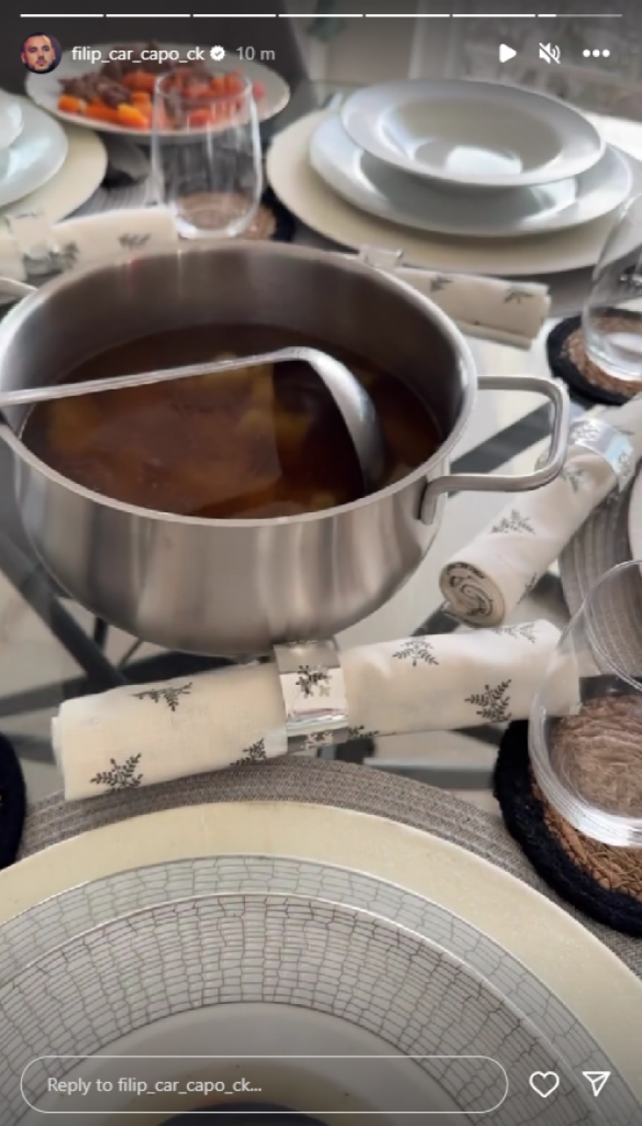 Filip Car se sada uživo uključio iz doma u Crikvenici i sa pratiocima na Instagram profilu podelio atmosferu iz porodične kuće. Filip danas proslavlja Božić po gregorijanskom kalendaru, te se može videti da je za sada sve idilično. Porodica je na okupu, a na stolu su postavljene sve đakonije koji su pripremili za ovaj poseban dan.