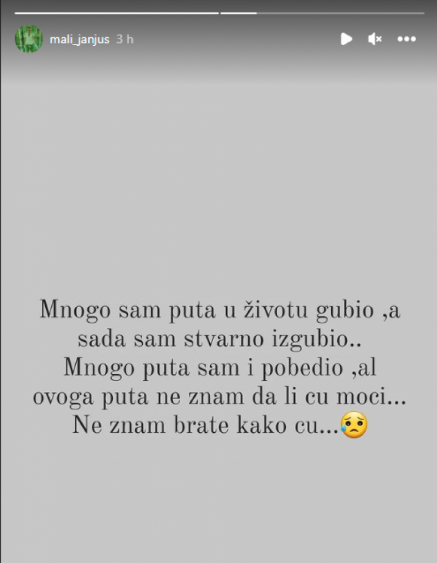 - Mnogo sam puta u životu gubio, a sada sam stvarno izgubio... Mnogo puta sam i pobedio, ali ovoga puta ne znam da li ću moći... Ne znam, brate, kako ću... - napisao je Janjuš.