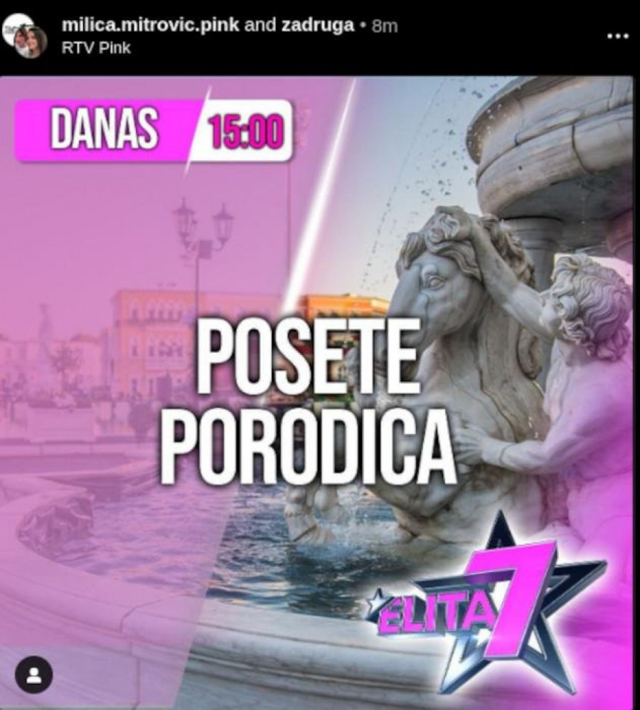 Danas je u rijalitiju "Elita 7" najavljeno pravo popodne puno uzbuđenja, jer Velika šefica na Instagram profilu najavljuje ulazak porodica takmičara. Ovo je trenutak koji uvek izaziva različite emocije kod takmičara, ali i kod publike koja prati ovaj rijaliti šou.