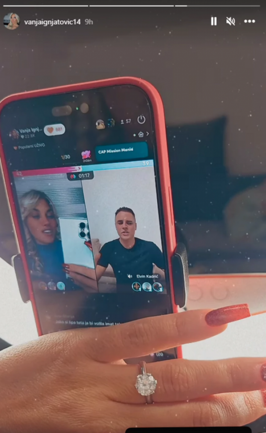 Naime, dok je Elvin pevao pesmu "Kada ljubav zakasni" u lajvu, Vanja je sa osmehom na licu pokazala prsten koji nosi na ruci. Ovaj potez izazvao je pravu lavinu komentara na društvenim mrežama, gde su korisnici počeli da spekulišu da li je reč o vereničkom prstenu ili možda burmi.