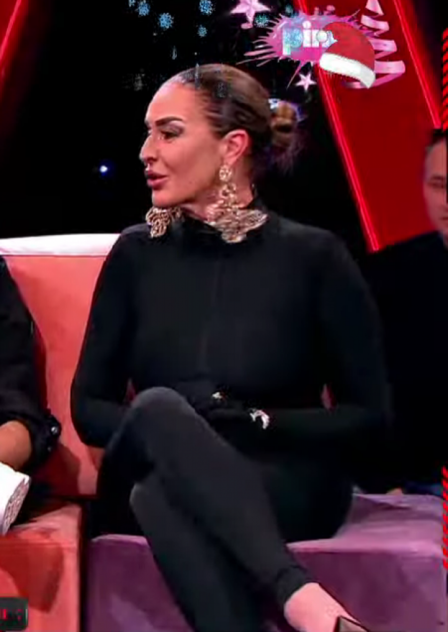 Naime, Kačavenda se u pomenutoj emisiji pojavila u crnom, uskom kombinezonu koji joj je išao skroz uz telo i obline, crne rukavice, dok je kosu zalizala u punđu. Od nakita imala je ogromne minđuše u obliku leptira, ali i zlatan sat modne marke "Roleks", kao i veliki prsten.
