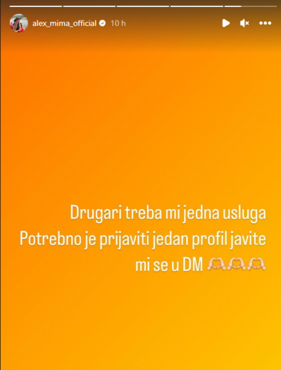 Na nedavno objavljenom Instagram profilu trudne starlete Aleksandre Nikolić izazvala je dosta pažnje među njenim pratiocima. Naime, Aleksandra je zatražila od svojih fanova da joj se jave privatno kako bi im dala link ka jednom profilu koji bi trebalo da blokiraju. Ova situacija je izazvala diskusiju među javnošću i postavlja se pitanje da li je u redu koristiti svoju popularnost na ovakav način i koliko je odgovorno pozivati svoje pratioce da prijavljuju profile. Foto: Instagram.com printscreen