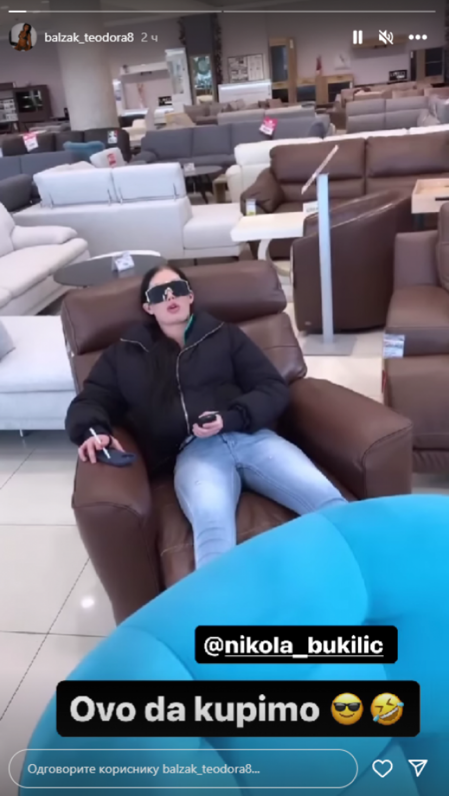 Teodora i Bukilić su sada podelili i fotografiju iz prodavnice nameštaja, na kojoj se vidi samo ona, koja u tom momentu leži i opušta se u fotelji, a Nikola je predložio da to kupe, zbog čega su mnogi shvatili da uveliko planiraju zajednički život i prelaze na naredni korak, odnosno brak.