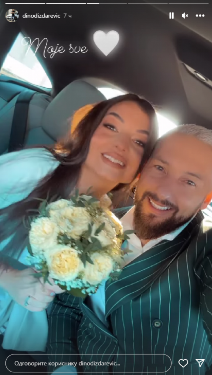 Iako niko nije očekivao da će tako brzo stati na ludi kamen, Dino je danas objavio snimak sa svojom, sada već suprugom, koja je blistala u venčanici, a oženjeni Dino nije skidao osmeh sa lica.