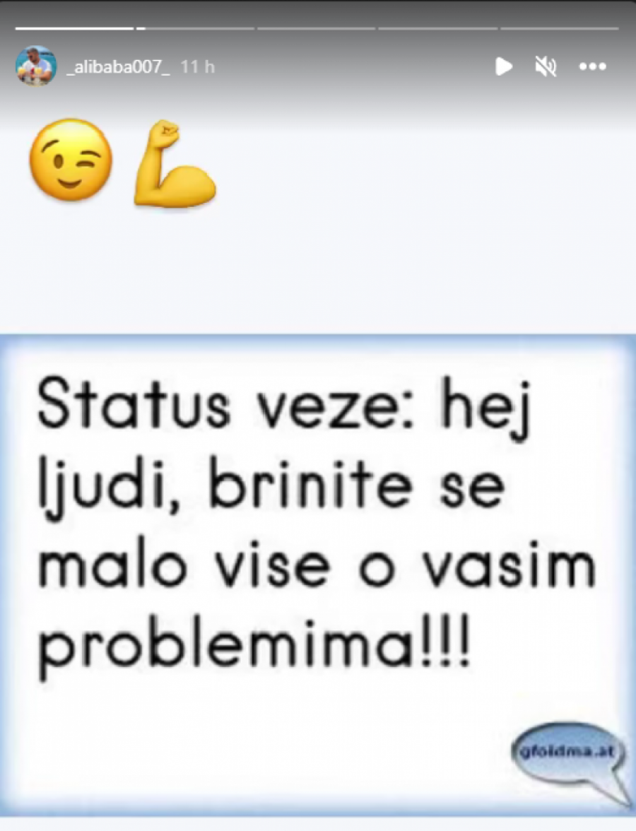 - Status veze: Hej ljud, brinite se malo više o vašim problemima - glasio je tekst koji je Durdžić podelio putem storija na Instagramu.