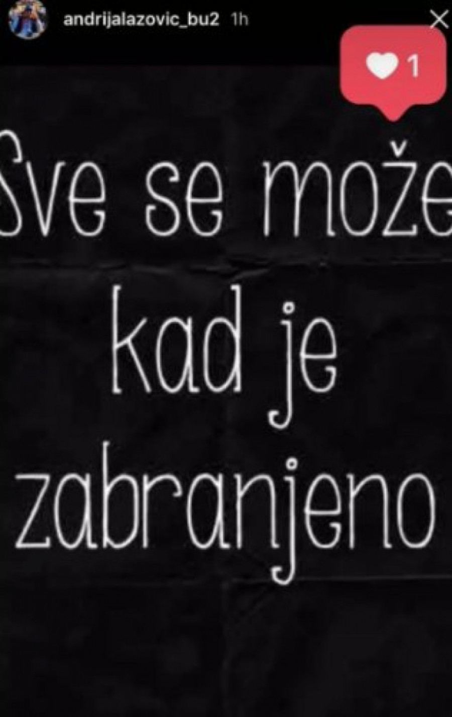 - Sve se može kad je zabranjeno - objavio je Andrija na društvenoj mreži, a nije jasno šta je ovom porukom konkretno želeo da kaže.