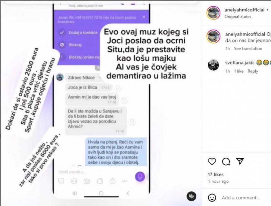 Sestra učesnice Elite Aneli Ahmić Sita Ahmić ratuje u spoljnom svetu sa njenim bivšim partnerom Asminom Durdžićem, pa je sada objavila dokaze o tome njena sestra ipak jeste brižna majka, s obzirom na to da on tvrdi da nije tako.