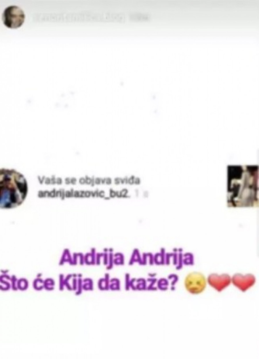 Andrija, Andrija, šta će Kija da kaže - pita se Milica Pavlović uz nekoliko stikera srca i smajlija.