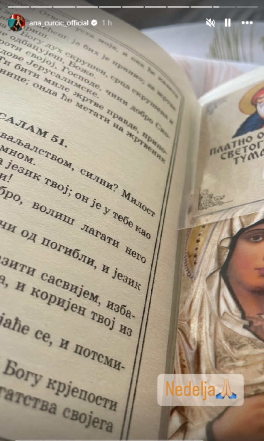 Nakon što se bivšoj zadrugarki Ani Ćurčić slošilo, ona se oglasila na Instagram profilu i otkrila šta se desilo samo nešto ranije. Naime, pre nego što joj se slošilo Ana Ćurčić obavljala je svoj ritual nedeljom i čitala molitve, kako bi pronašla svoj mir, budući da se vidno potresla zbog ljute rivalke Anđele Đuričić.