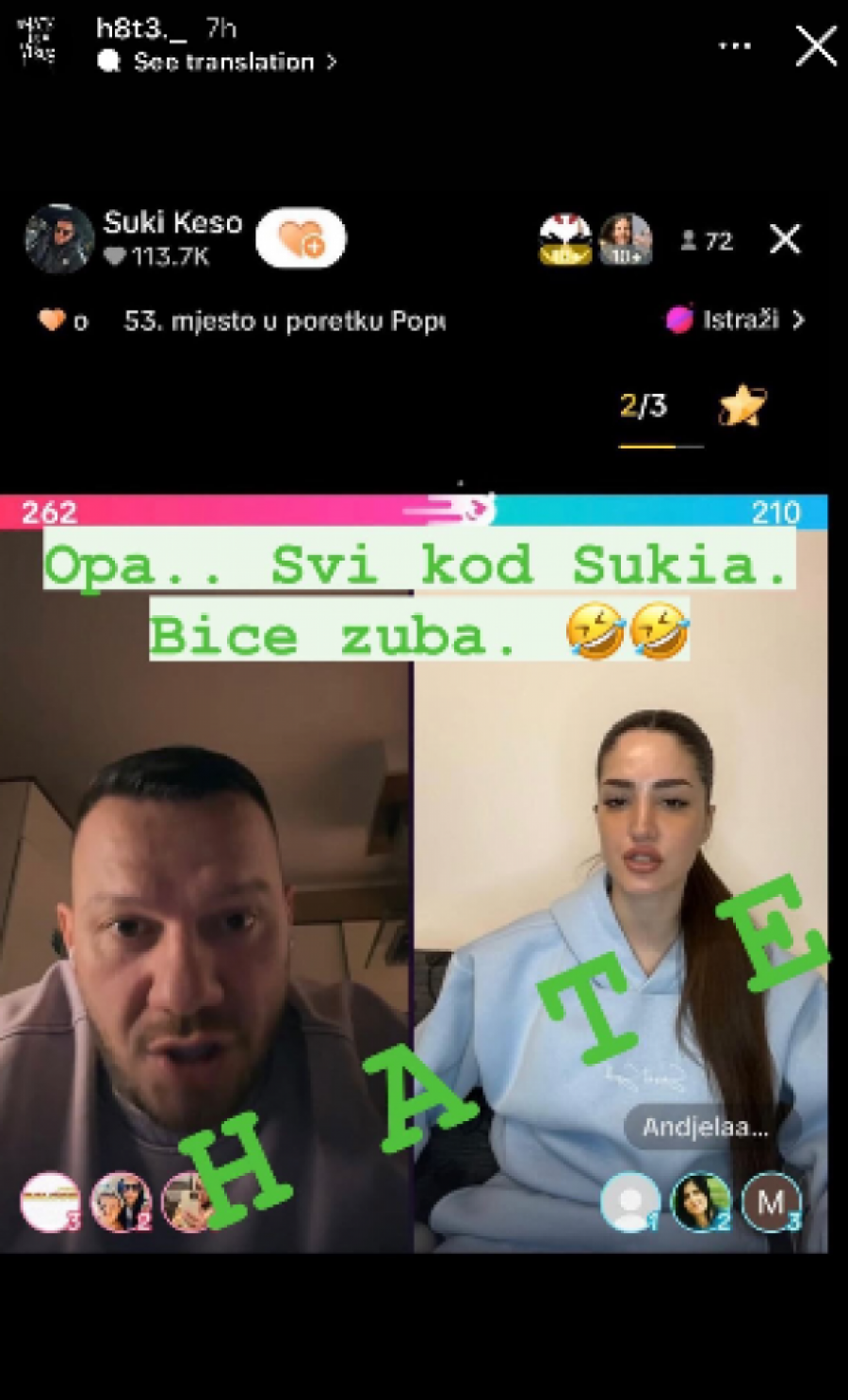 Starleta i bivša zadrugarka Anđela Đuričić odlučila je da napravi totalni preokret u njenim poznanstvima sa ozbiljnim šmekerima sa estrade. Naime, nakon raskida sa Zvezdanom Slavnićem, Anđela je odlučila da održi lajv na TikToku ni manje, ni više nego sa Sukijem Kesom.