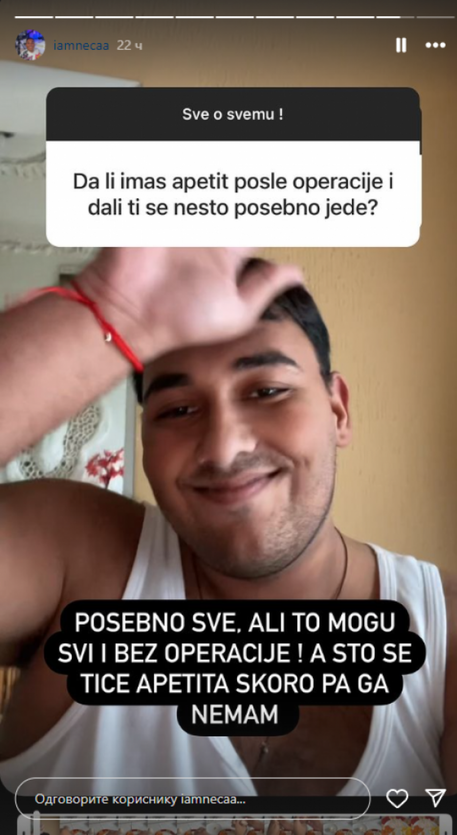 Bivši zadrugar Nenad Lazić Neca nedavno je operisao želudac u Turskoj. Neca je želeo da smrša, a danas je svojim fanovima na društvenoj mreži Instagram odgovorao na pitanje vezano za svoje zdravlje, ali je govorio i o drugim aktuelnostima.