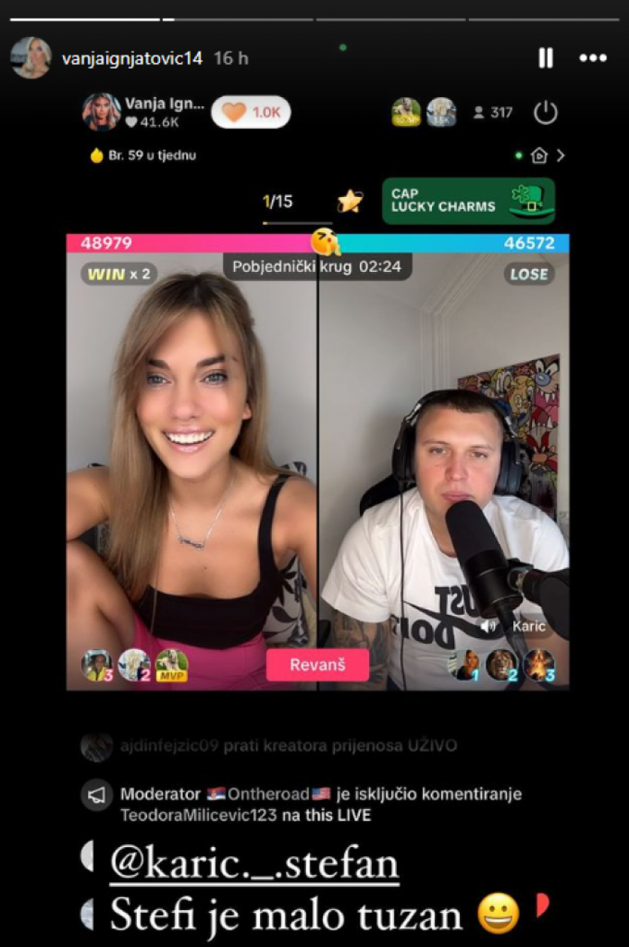 Nakon razvoda od Nenada Aleksića Ša, Vanja Ignjatović odlučila je da potpuno preuzme kontrolu nad provokacijama, te je na TikTok uživo prenosu odigrala nekoliko mečeva sa bivšim zadrugarom Stefanom Karićem, zbog čega su mnogi ostali u šoku.