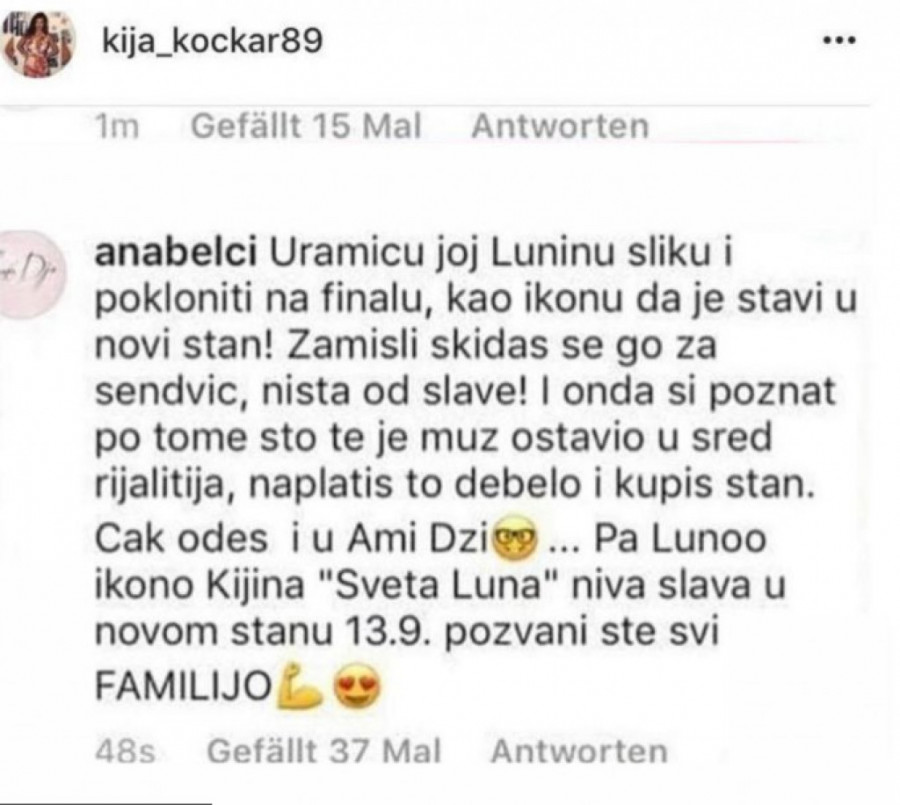 Foto: printscreen/instagram.com/kija_kockar89Ostaje sumnja da je reč o fotomontaži budući da je pevačica objavila da se povlači u medijsku ilegalu i da više neće komentarisati dešavanja iz rijalitija.