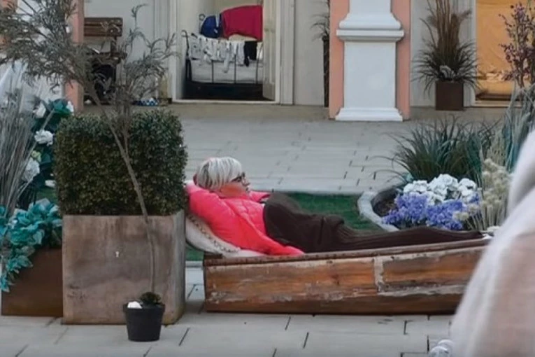 Foto: printscreen/TVPinkUmorna pevačica odlučila je da se odmori pored vode, pa je za svoje potrebe uzela čamac koji je našla u dvorištu i u njega stavila posteljinu na koju je legla. Ukućani koji su gledali šta radi ova zadrugarka iskoristili su priliku da preokrenu celu situaciju i da se neslano našale.