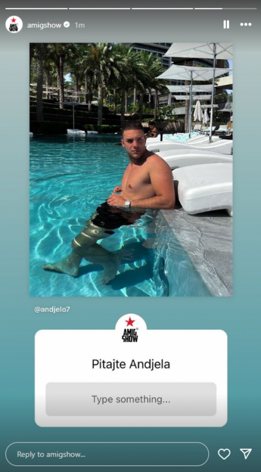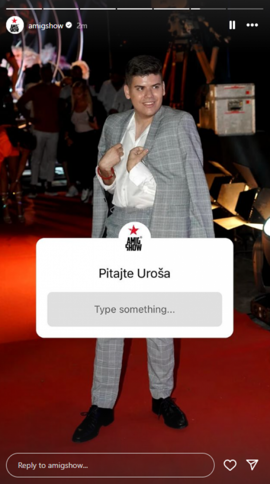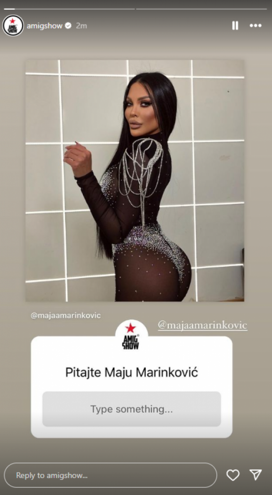 Na zvaničnom profilu emisuje "AmiG Show" na društvenoj mreži Instagram izašlo je obaveštenje ko će biti gosti u emisiji koja će se emitovati u utorak. Oni su otkrili da će u najnovijem izdanju gostovati aktuelni učesnici rijaltiija "Elita". Kao i pred svaku emisiju objavljena je opcija da se gostima postavljaju pitanja i samim tim otkriveno je da će gostovati Maja Marinković, Aneli Ahmić, Miljana Kulić, Stanislav Krofak, Anita Stanojlović, Uroš Stanić i Anđelo Ranković.