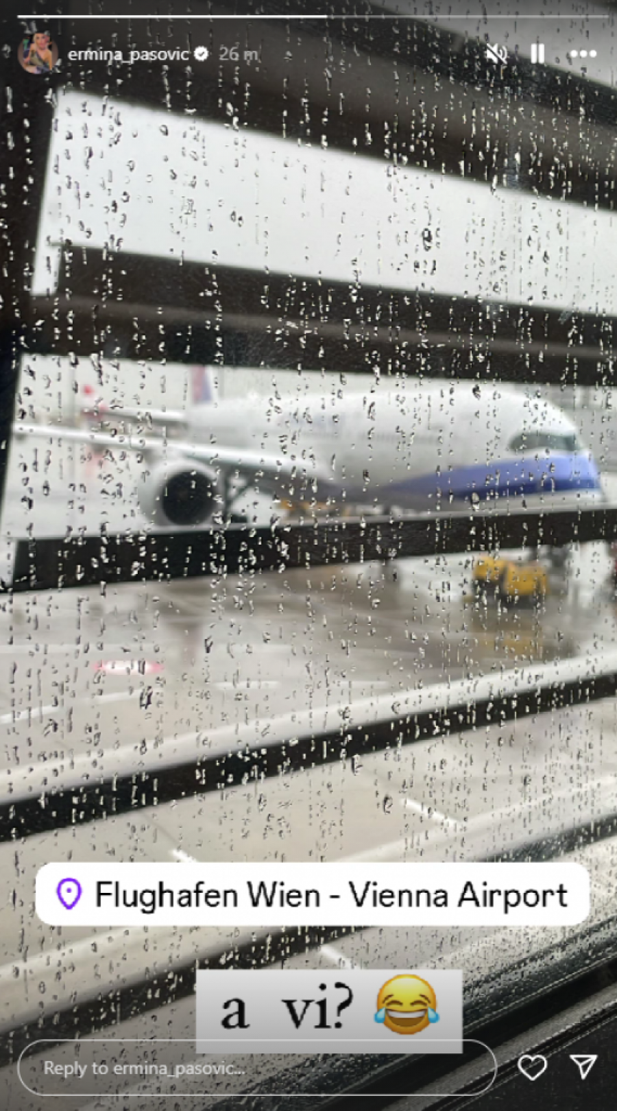 Fanovi popularnog rijalitija "Elita" ostali su iznenađeni kada je bivša zadrugarka Ermina Pašović objavila snimak s aerodroma u Beču na svom Instagram profilu. Mnogi su odmah pomislili da Ermina dolazi u Srbiju da bi večeras bila specijalni gost u emisiji kod voditeljke Dušice Jakovljević. Foto: Instagram.com