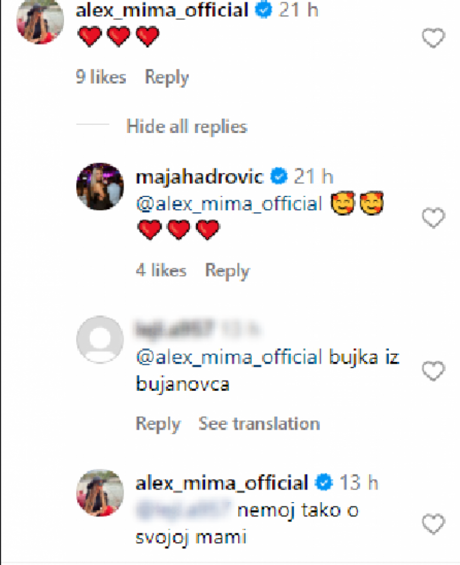 Nakon što je pročitala uvredu upućenu njoj, Aleksandra je hitno morala da odreaguje kako bi se suprotstavila ovom napadu. Mnogi njeni pratioci su je savetovali da prijavi ovaj slučaj policiji kako bi zaštitila svoje bezbednost i integritet.