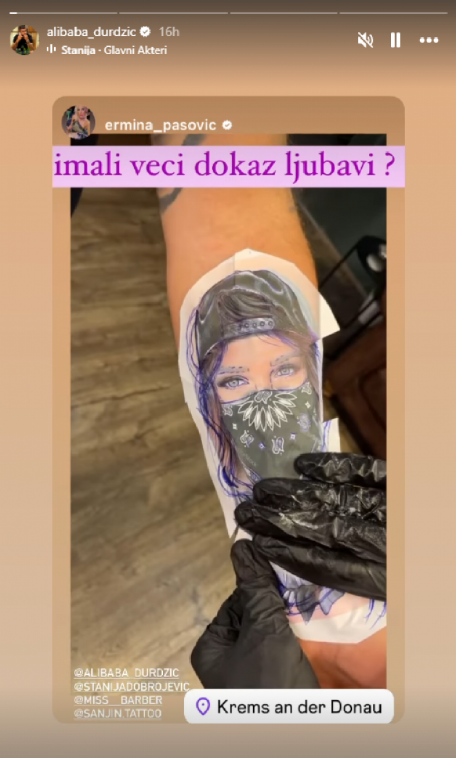 Naime, Alibaba je rešio da sliku svoje drage u koju se već mesecima zaklinje ureže u kožu i zauvek je nosi na svom telu. Kao dokaz ljubavi, Durdžić je istetovirao Stanijin lik na ruci.