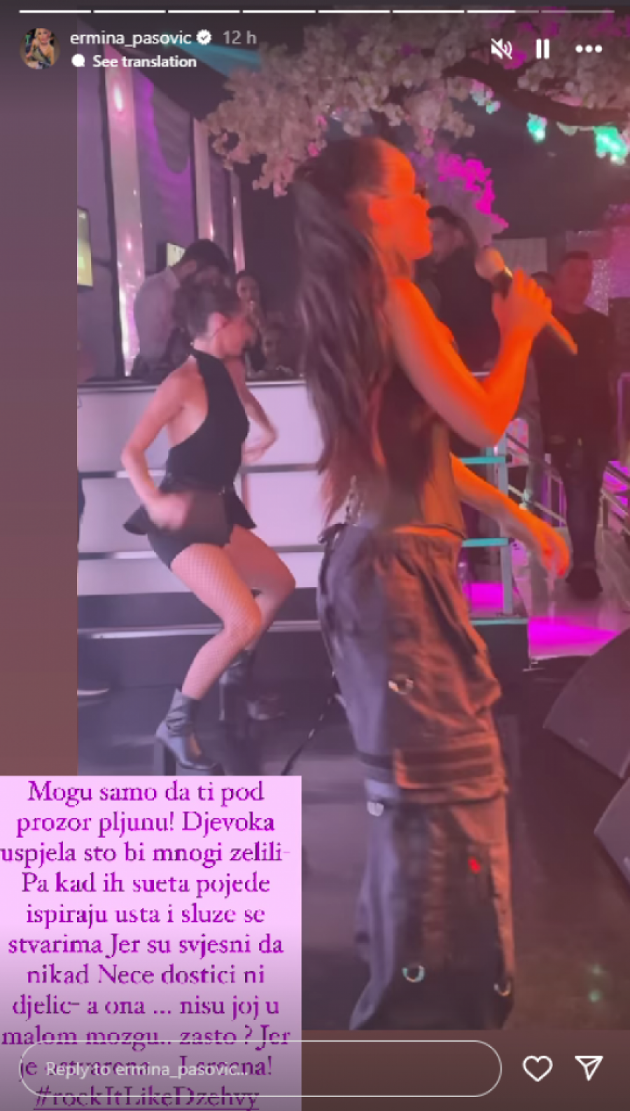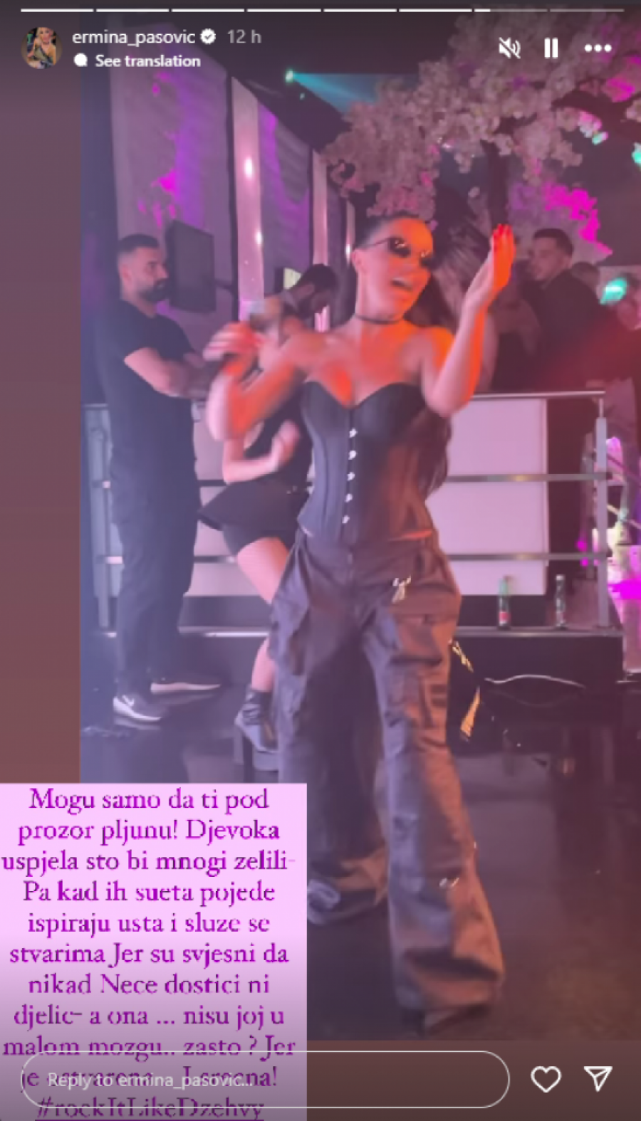 - Mogu samo da ti pod prozor pljunu! Devojka uspela što bi mnogi želeli. Pa kad ih sueta pojede, ispiraju usta i služe se stvarima, jer su svesni da nikad neće dostići ni delić, a ona... Nisu joj u malom mozgu, zašto? Jer je ostvarena i srećna - napisala je Ermina Pašović uz snimak Teodore Džehverović.
