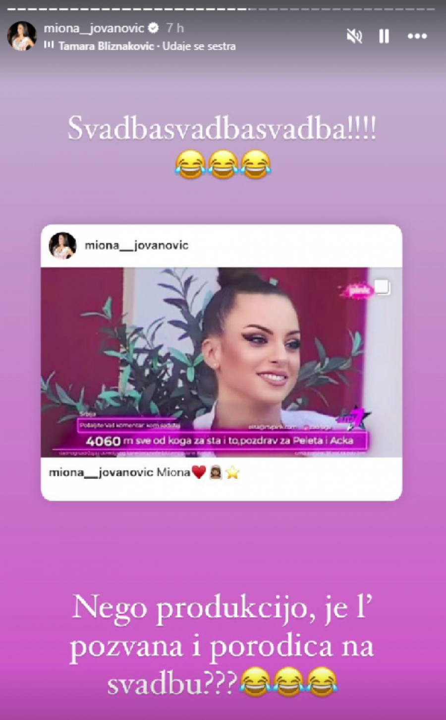 - Svadba! Svadba! Nego produkcijo, je l' pozvana i porodica na svadbu? - glasilo je pitanje koje je osvanulo na Mioninom profilu.
