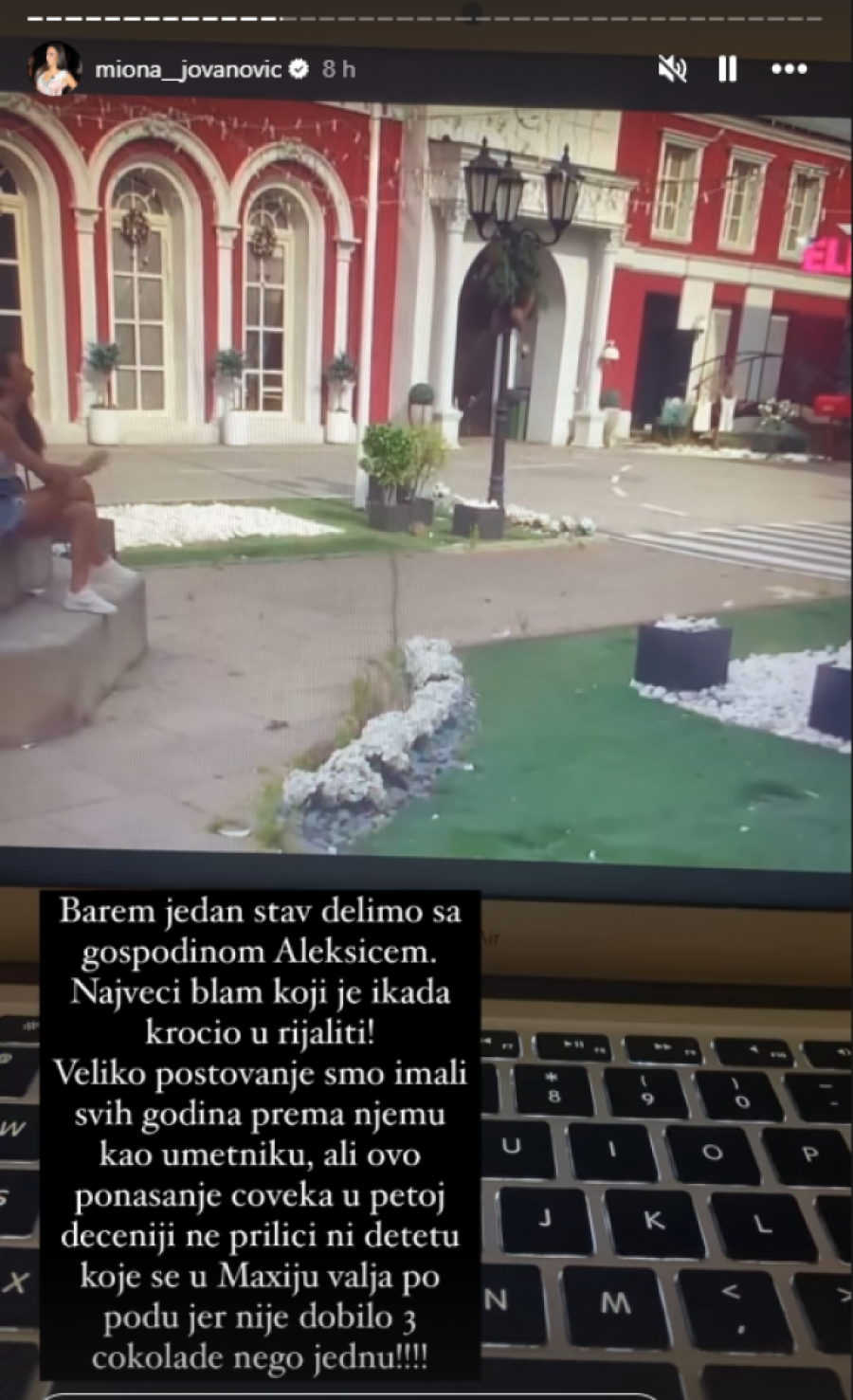 - Barem jedan stav delimo sa gospodinom Aleksićem. Najveći blam koji je ikada kročio u rijaliti! Veliko poštovanje smo imali svih godina prema njemu kao umetniku, ali ovo ponašanje čoveka u petoj deceniji ne priliči ni detetu koje se u prodavnici valja po podu, jer nije dobilo 3 čokolade nego jednu - napisali su Mionini, pa nastavili: