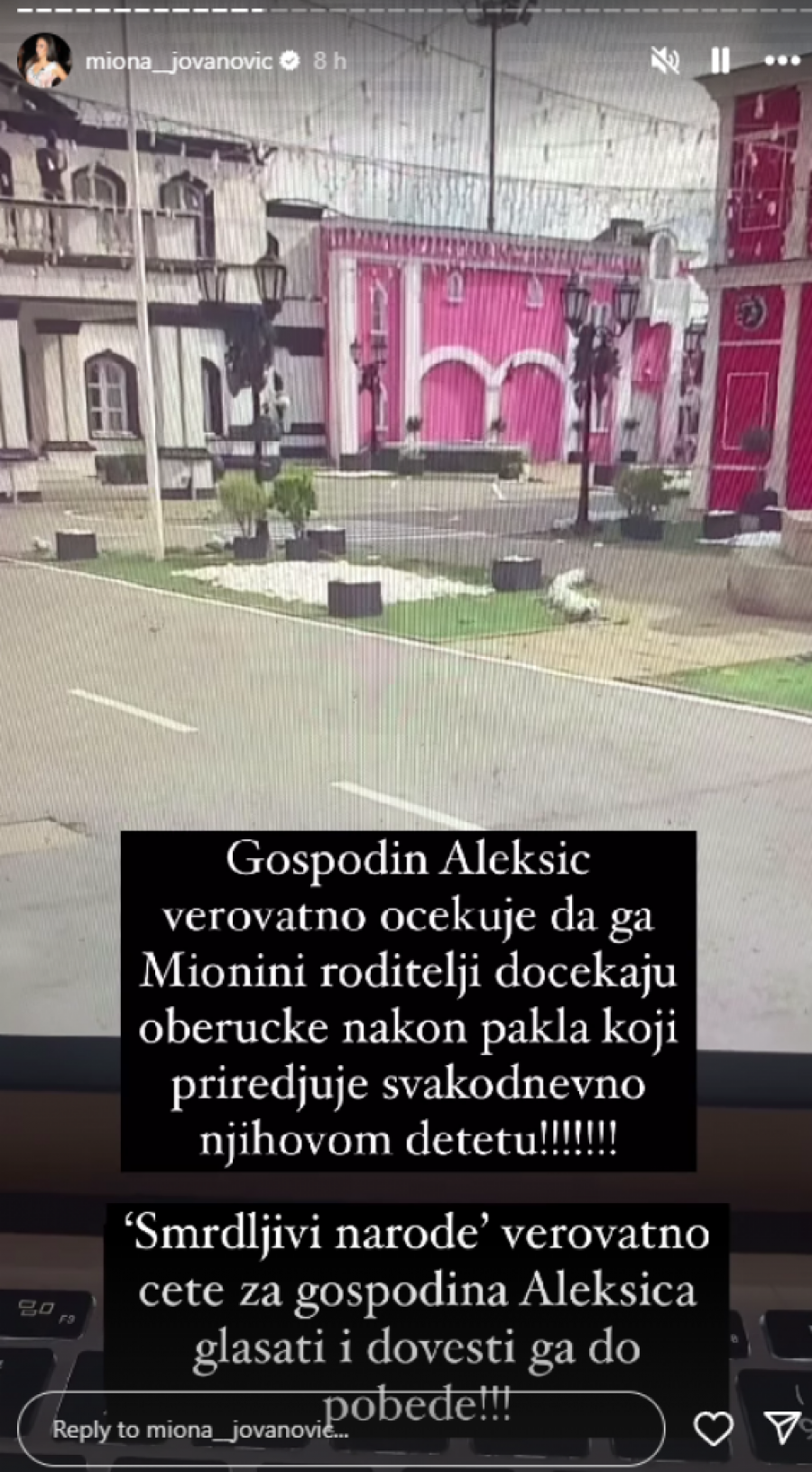 - Gospodin Aleksić verovatno očekuje da ga Mionini roditelji dočekaju oberučke nakon pakla koji priređuje svakodnevno njihovom detetu! "Smrdljivi narode" verovatno ćete za gospodina Aleksića glasati i dovesti ga do pobede! - a potom za sam kraj su poručili:
