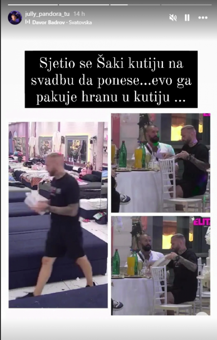 - Setio se Šaki kutiju na svadbu da ponese, evo ga pakuje hranu u kutiju - stoji u opisu fotografija koje je zabeležila kamera.