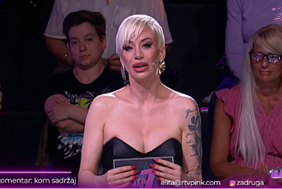 Voditeljka Dušica Jakovljević u specijalnoj emisiji "Elita" najavila je uzbudljivu vest o pokušaju produkcije da stupi u kontakt sa majkom učesnice rijalitija "Elita", Mione Jovanović. Ova neočekivana situacija izazvala je veliku pažnju kako publike, tako i samih učesnika. Foto: youtube.com/Zadruga Official