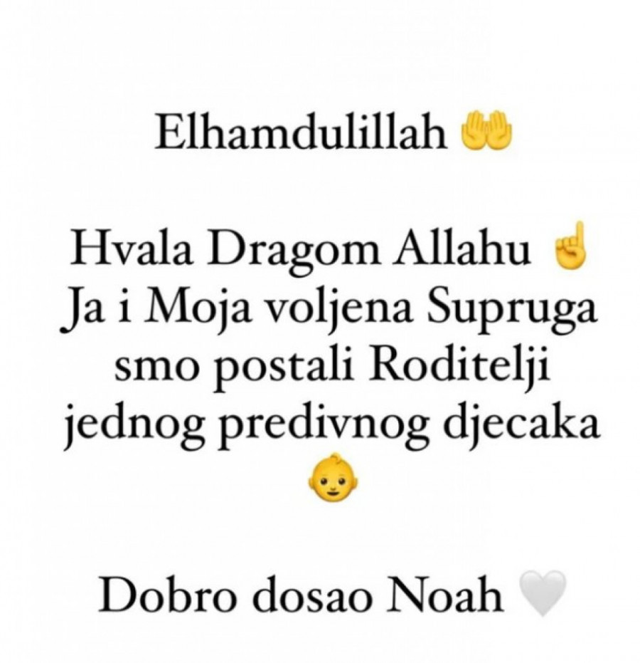 Nakon što je saznao da je postao otac dečaka, Dino se ponovo oglasio na društvenim mrežama da bi podelio tu radosnu vest. Svojim pratiocima je otkrio da je njegova supruga uspešno donela na svet dečaka, kojem su dali ime Noa.