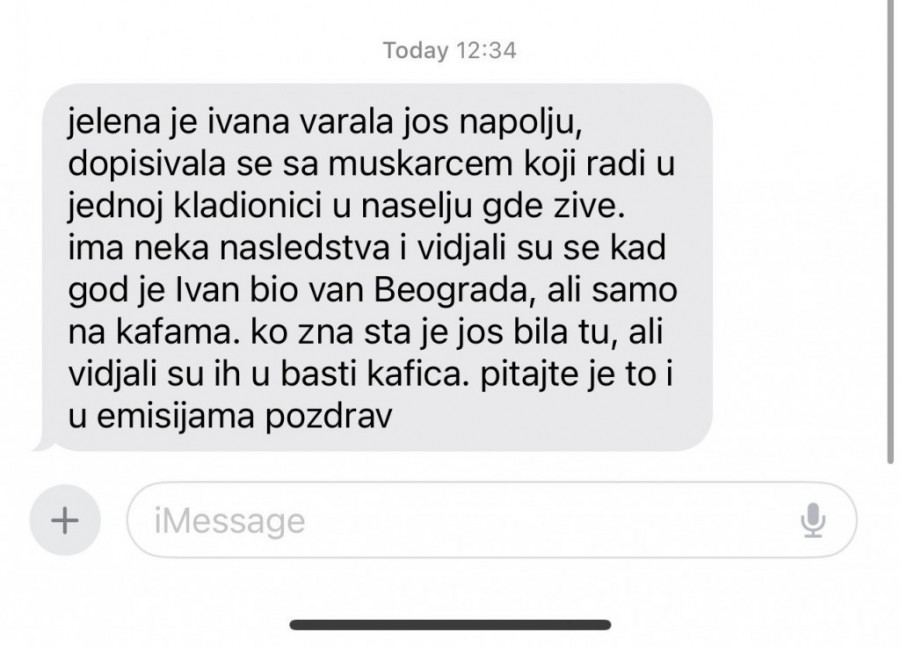 Taj čovek ima neka nasledstva i viđali su se kad god bi Ivan bio van Beograda, ali samo na kafama. Ko zna šta je još bilo tu, ali su se viđali u bašti kafića. Pitajte je to i u emisijama - pisalo je u poruci koju smo dobili.