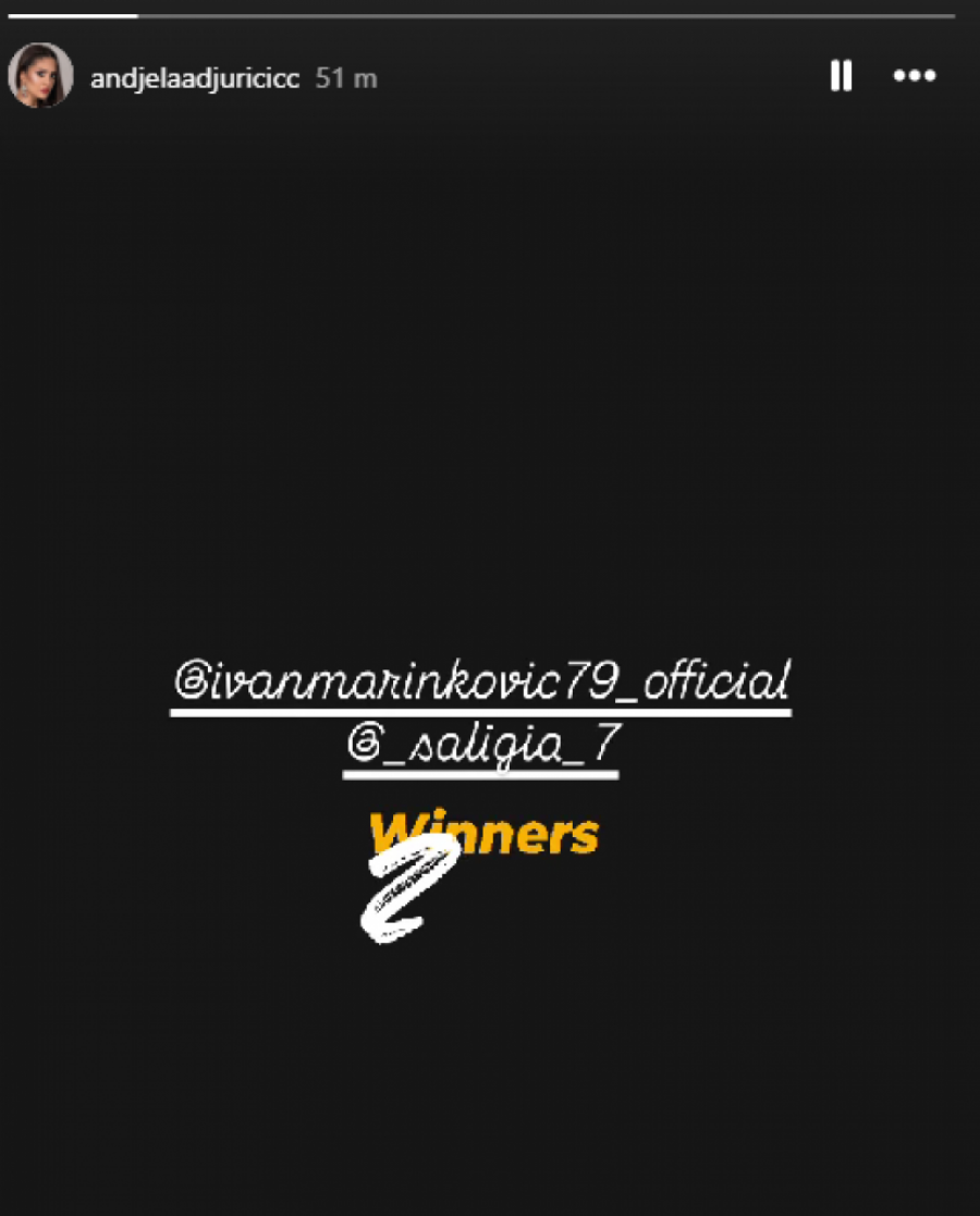 - Pobednici su Ivan Marinković i Bojana Pavlović - napisala je Anđela na Instagramu.