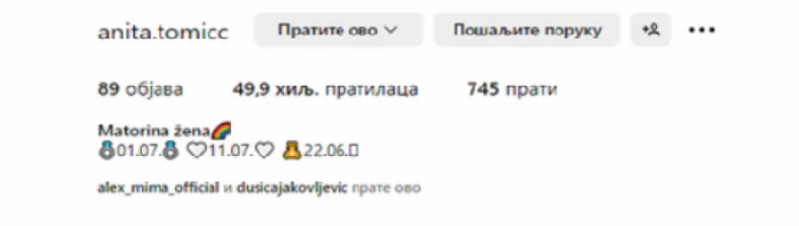 Takođe, Aniti još uvek na Instagramu piše prezime Tomić, a da li će ga i kada promeniti, ostaje da ispratimo.