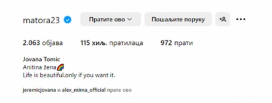 Naime, na njihovim Instagram profilima u opsiu im i dalje stoji "Anitina žena" kod Matore i kod Anite "Matorina žena".