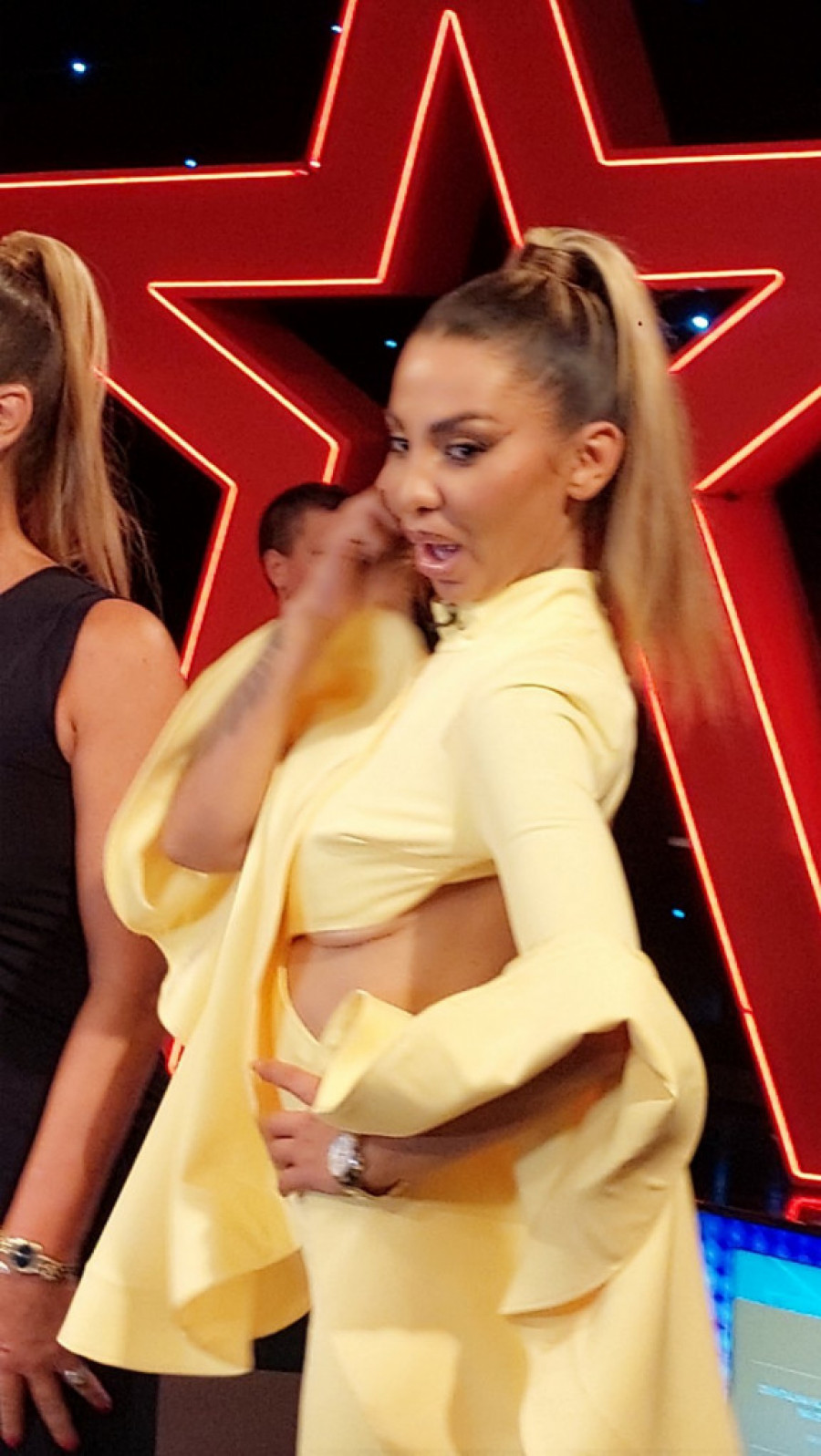 Žuta haljina koju je nosila isticala je njenu eleganciju i stil, čime je dodatno doprinela atmosferi događaja. Mediji su brzo reagovali na Anelino pojavljivanje, ističući kako je njen dolazak bio jedan od glavnih momenata današnjeg snimanja.