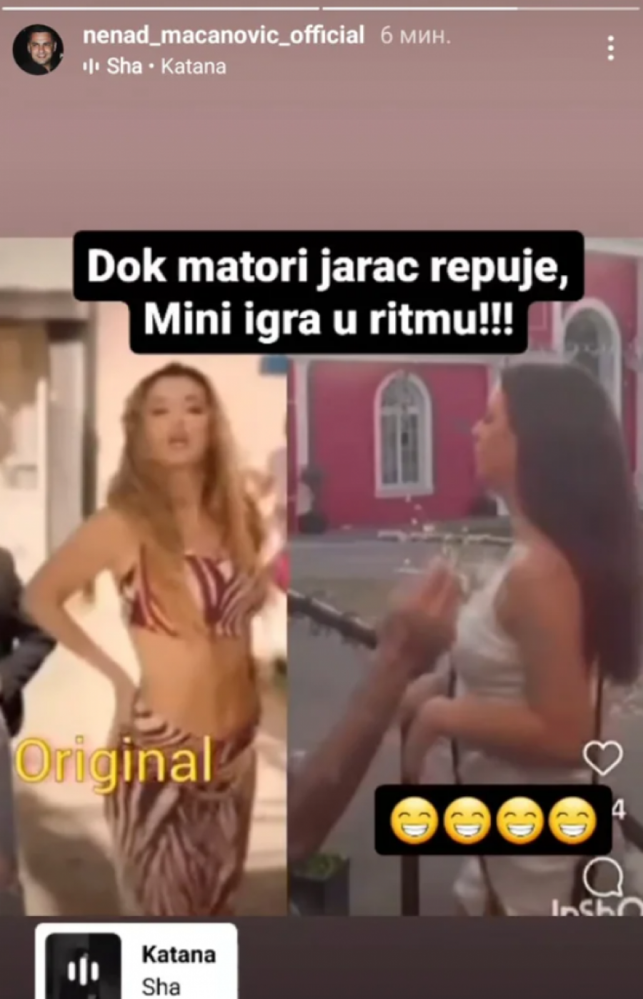 Nakon što je Ša otkrio da Mioninu karijeru vidi poput karijere Tee Tairović, Macanović se slatko ismejao, te ih je ponizio na svom Instagram storiju.