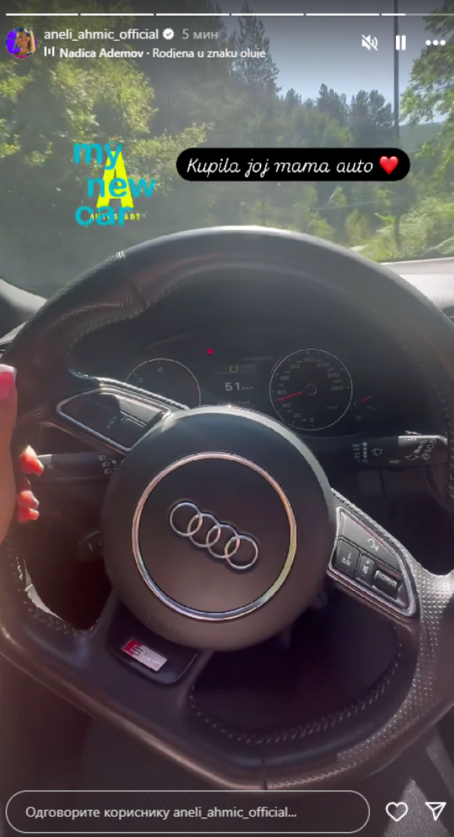 Nakon što je Aneli Ahmić danas je otkrila da je kupila novi automobil i da ga je birala njena ćerka Nora, oglasio se otac njenog deteta Asmin Durdžić i na veoma maliciozan način prokomentarisao način na koji je njegova bivša obezbedila sebi i naslednici besnu mašinu.