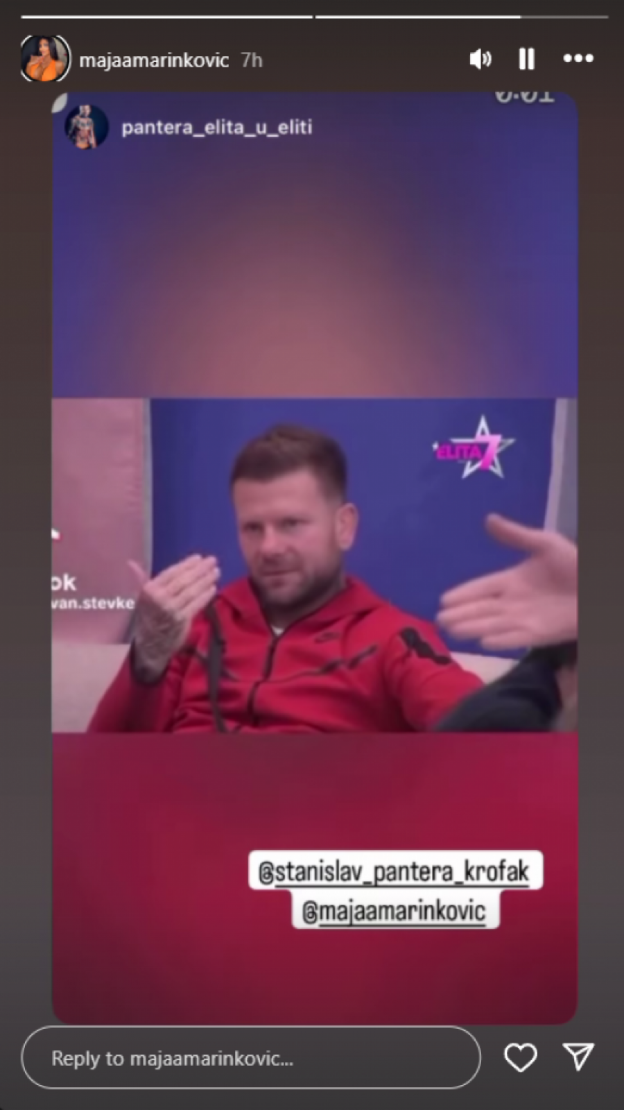 Bivši učesnik "Elite 7" Stanislav Krofak Pantera nedavno je operisao nos i to kod doktora Maje Marinković. Učesnica je prilikom prethodnog gostovanja u emisiji "Narod pita" otkrila da ju je Krofak izblamirao jer se sve vreme cenkao oko intervencije, što je on i potvrdio. Dok se Stanislav oporavlja od operacije, Maja mu šalje ne baš tako tajne signale.