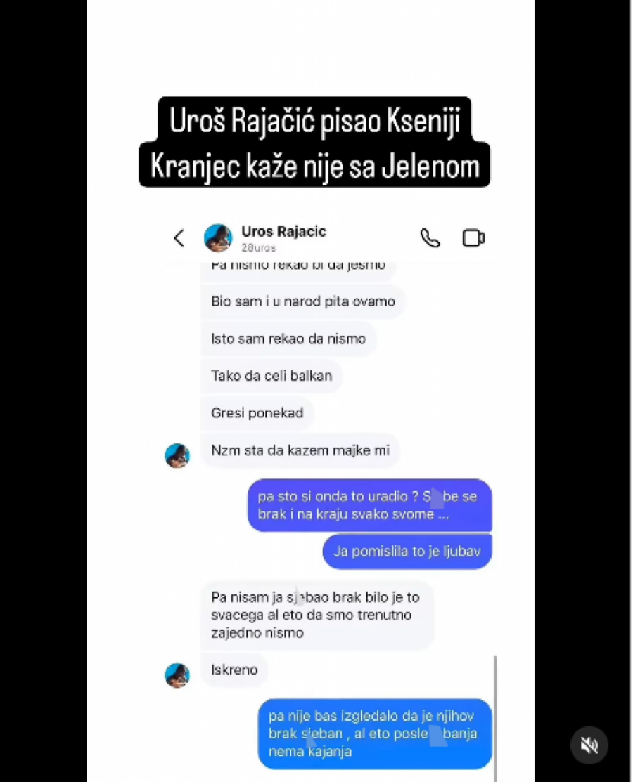 - Uroš Rajačić pisao Kseniji Kranjec, kaže da nije s Jelenom - stoji u opisu prepiski koje su se pojavile na društvenoj mreži Instagram.