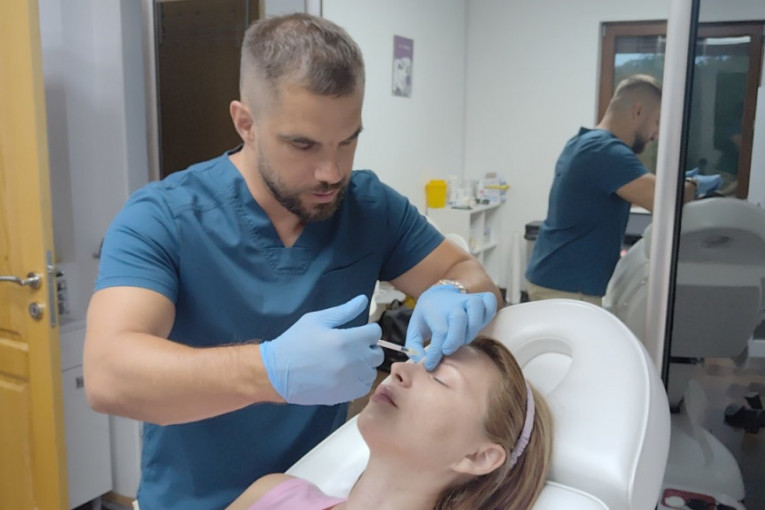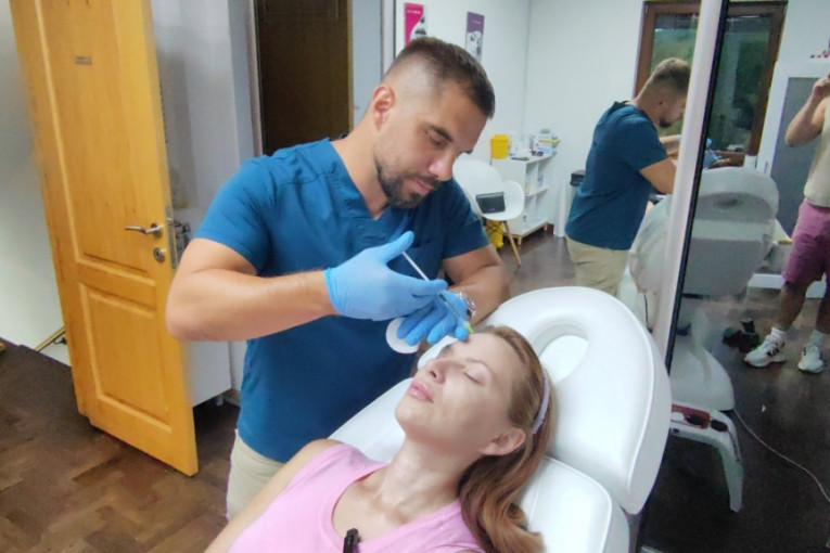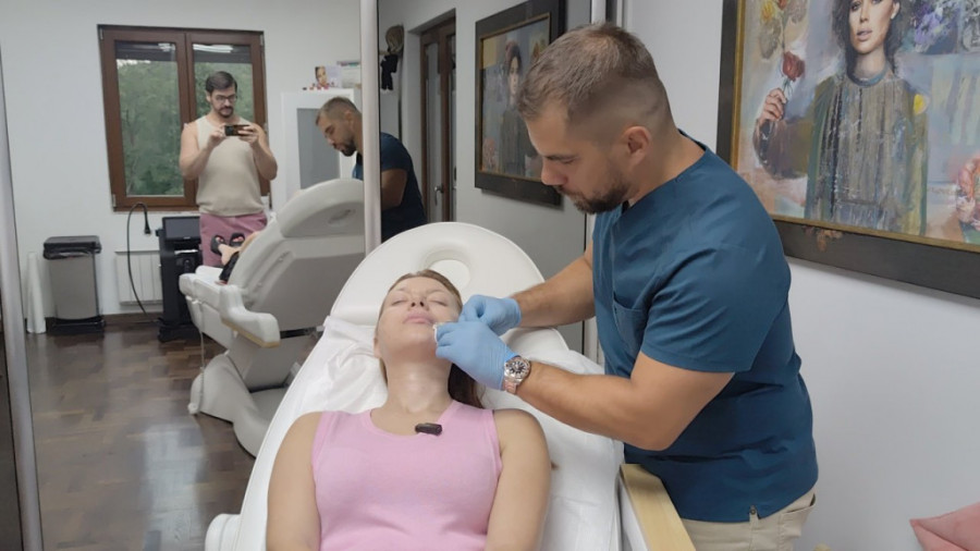 Ona se sve vreme oduševljeno smejala, pa bi se reklo da je nije trpela bolove zbog lepote.