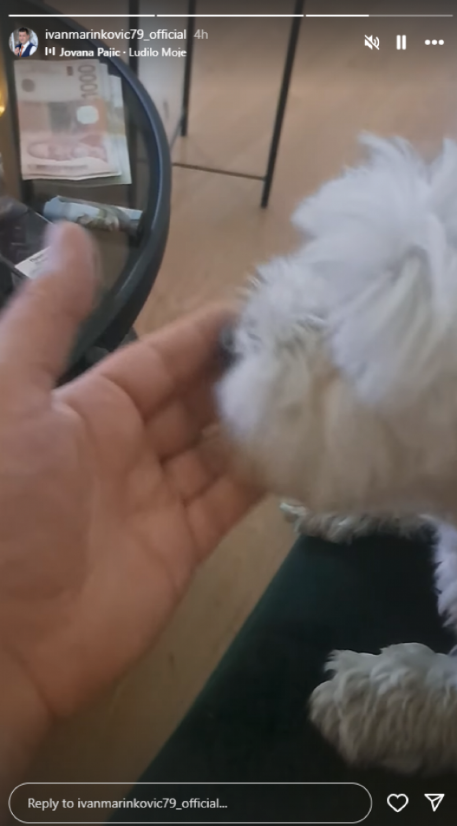 Ivan je danas potvrdio da je sa njim ponovo pas Beka, a ono što je izazvalo posebnu pažnju bila je pozamašna svota novčanica koja je stajala na stolu. Uz fotografiju, Ivan je objavio pesmu Jovane Pajić "Ludilo moje".