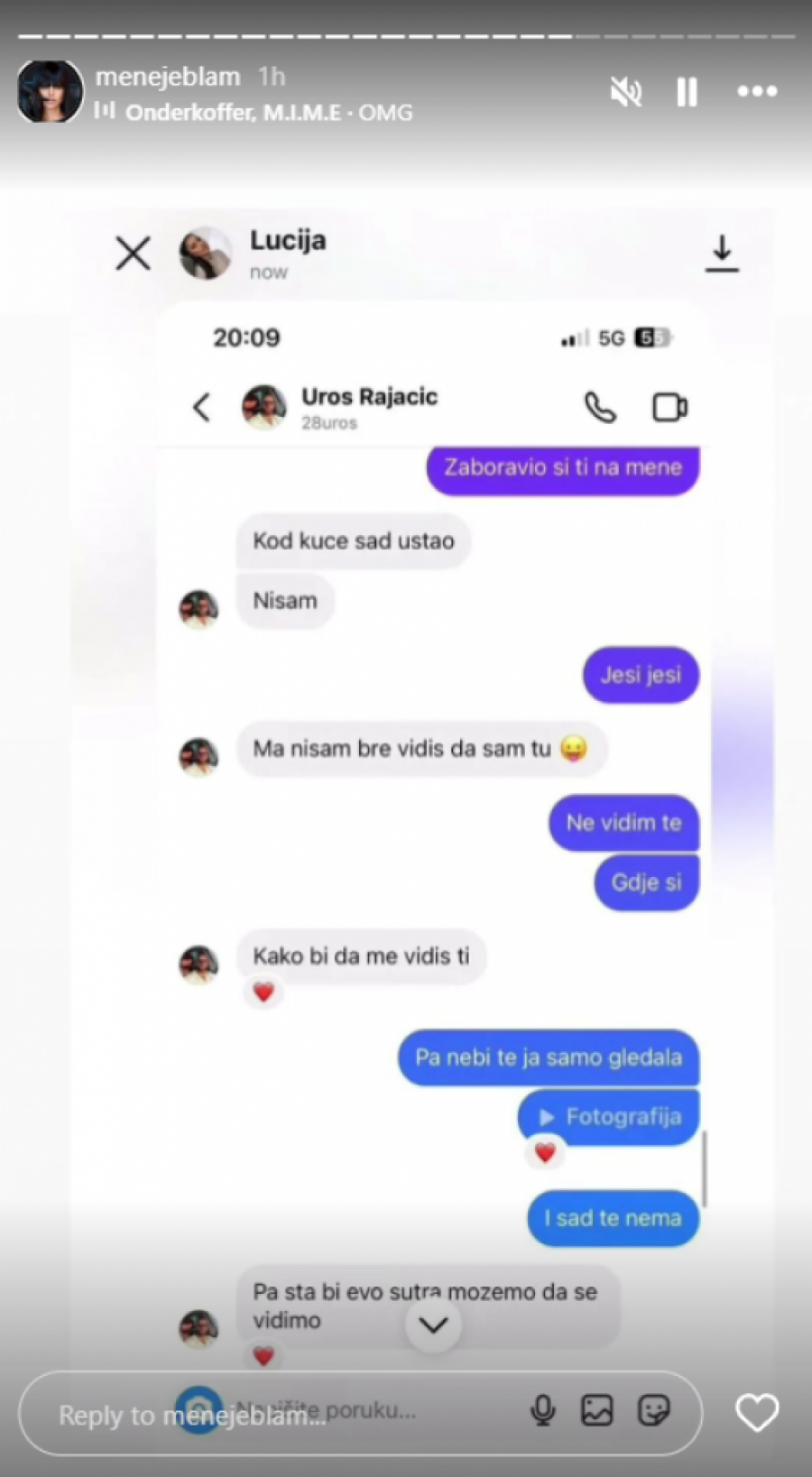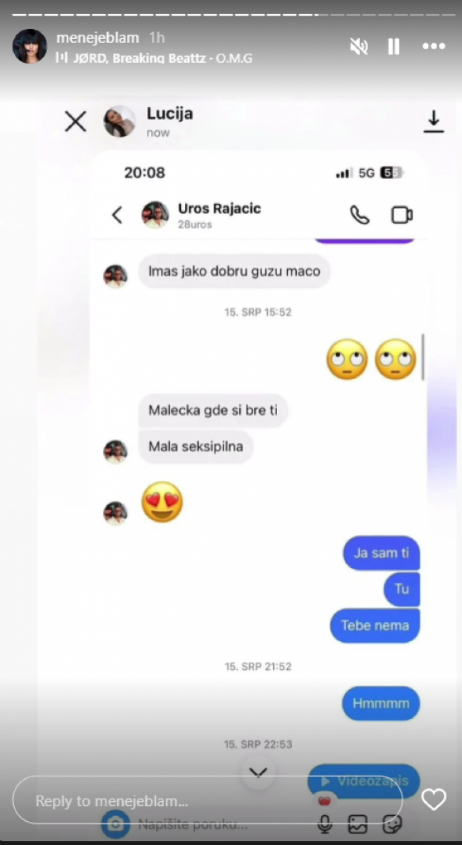 Međutim, jedna stranica koja se bavi dešavanjima iz rijalitija "Elite" objavila je Uroševe privatne prepiske sa izvesnom devojkom koju je on muvao u proteklom periodu. Rajačić je izvesnoj Luciji pohvalio zadnjicu, a potom je zvao da se vide, što možete videti u galeriji u nastavku ovog teksta.