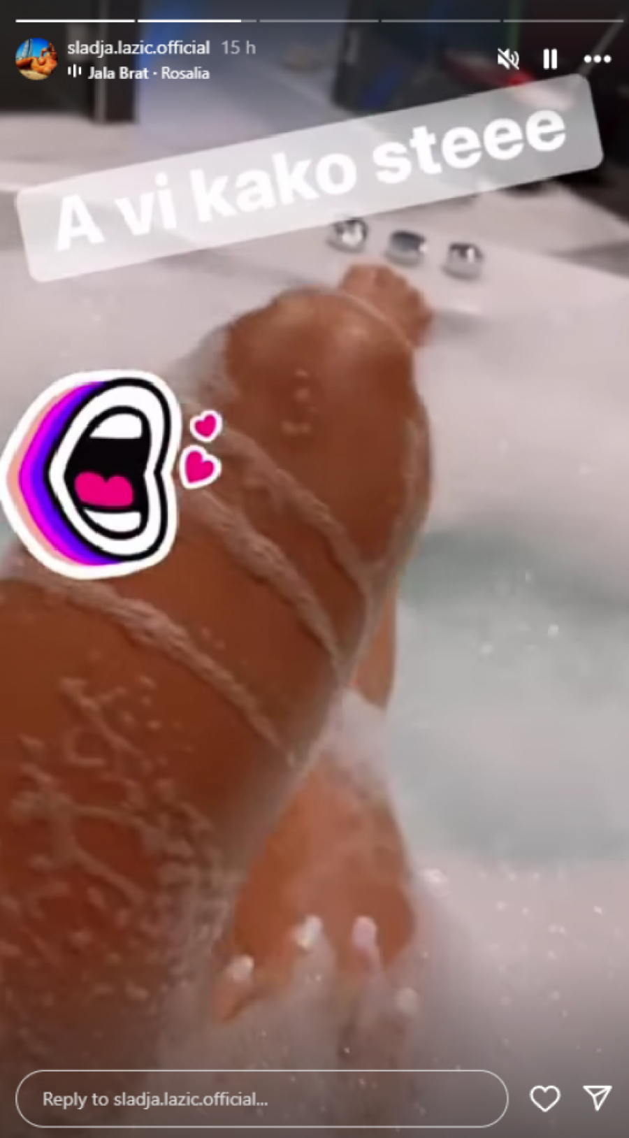 Bivša učesnica rijalitija "Elita 7" i poznata starleta Slađa Lazić ponovo je privukla pažnju javnosti objavom provokativnog snimka iz kade dok se kupala. Snimak je brzo postao viralan na društvenim mrežama, a komentari na račun njenog izvajanog izgleda su se samo nizali.