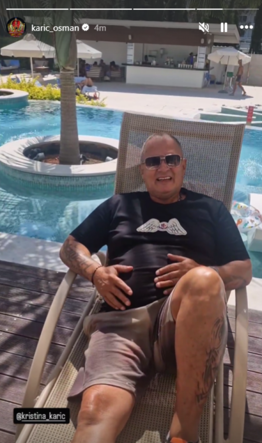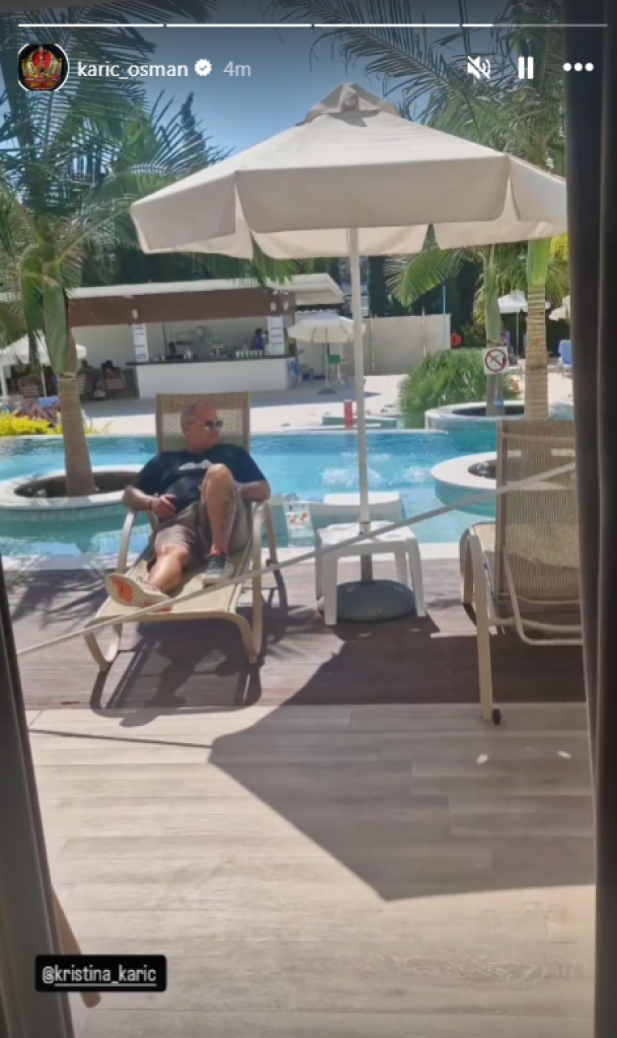 - Stigli smo ljudi. Osmane, da li ti treba nešto? - rekla je Kristina, koja je usnimila Osmana kako leži na ležaljci kraj bazena.