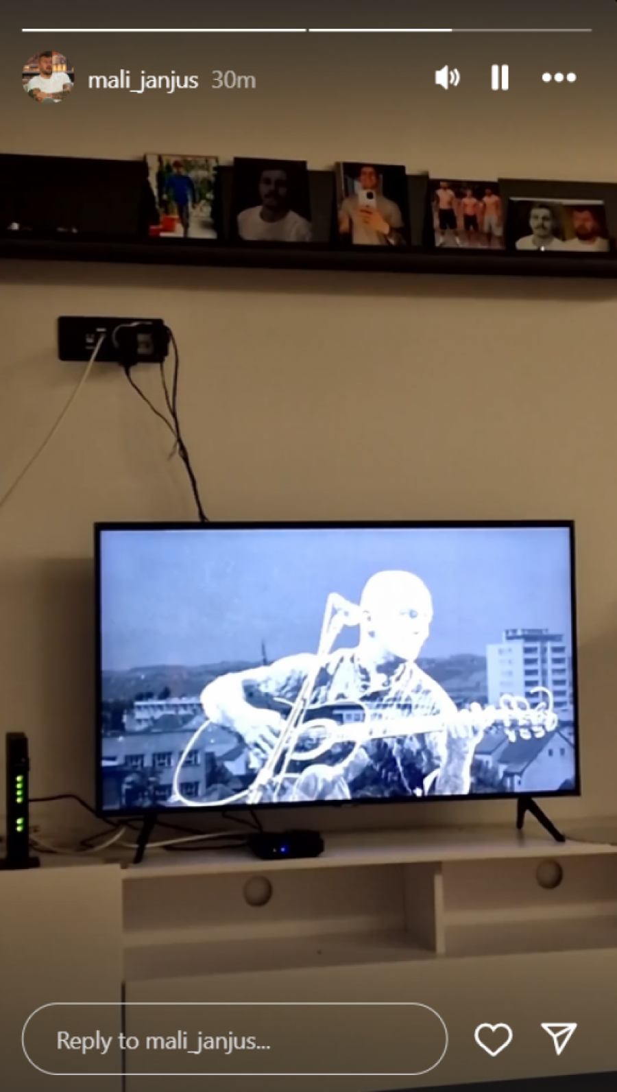 Međutim, par sati pred početak emisije, on se oglasio na svom Instagramu, te objavama pokazao u kakvom se emotivnom stanju trenutno nalazi. Naime, Janjuš je snimao delić atmosfere u svom dnevnom boravku, a u prvom planu je TV ekran na kome pušta muziku iznad kog je polica sa slikama pokojnog brata Mihajla Janjuševića.