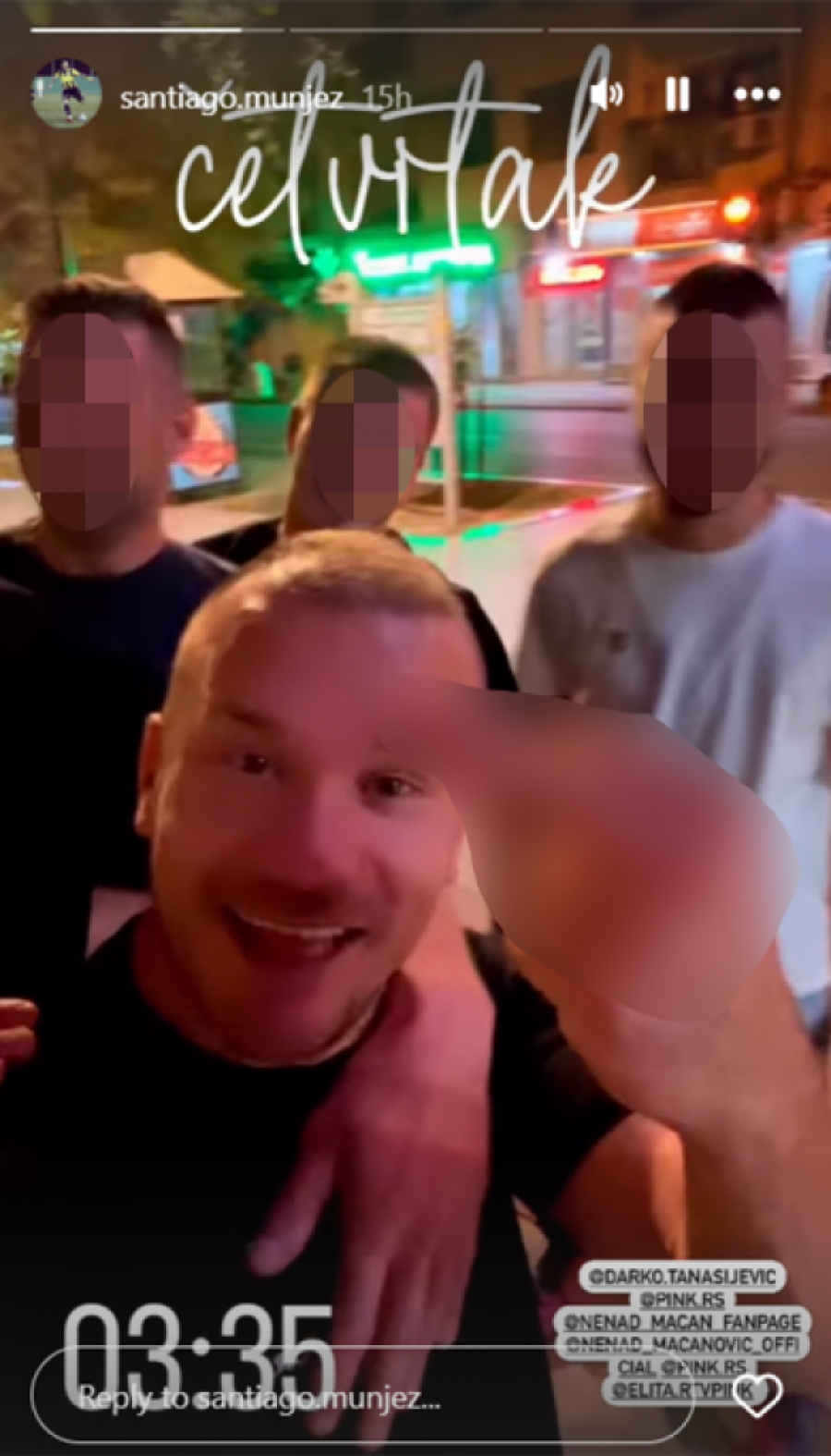 On se prvo snimio sa još trojicom mladića sa kojima je skandirao Matorin nadimak uz pogrdnu poruku i pokazivanje srednjeg prsta u kameru, a dok se Matora čudila zbog čega je opet napada, pošto joj se posle prošlog sukoba u emisiji izvinjavao, Munjez se nije zaustavljao.