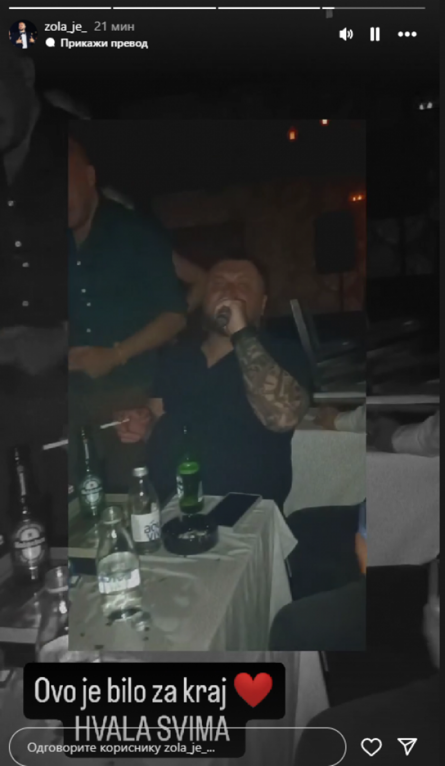 - Ovo je bilo za kraj. Hvala svima - napisao je Zola uz snimak iz kafane.