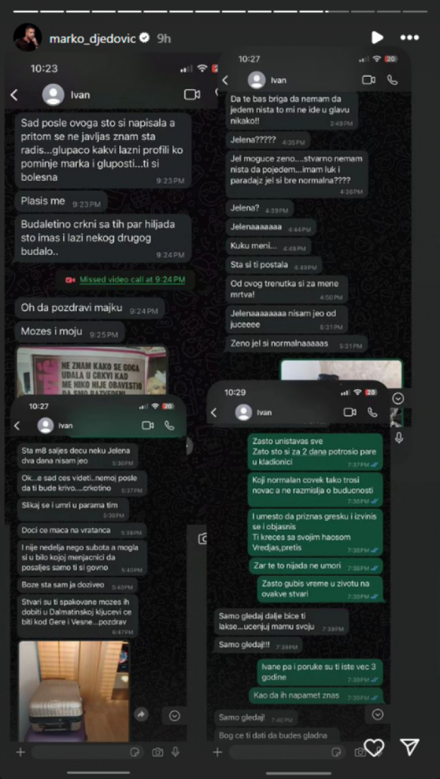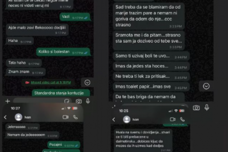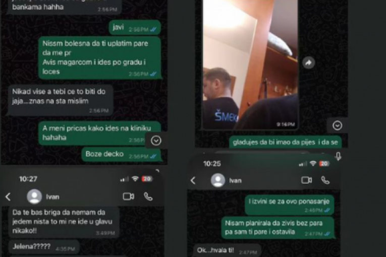 - Devojko, da li ti shvataš da ja nemam parče hleba u stanu, dva dana nisam jeo. Prebaci mi 2.000 da imam - napisao je Ivan, ali je Jelena uprkos tome odbila da mu pomogne, optužujući ga da pokušava da je iskoristi: