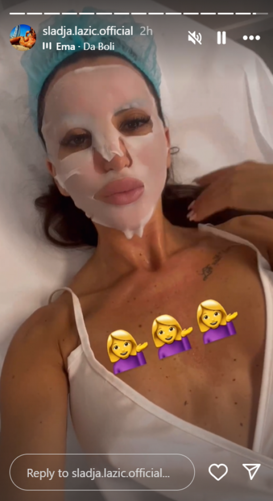 Slađa se nedavno oglasila iz privatne klinike gde je njen izgled bio zabrinjavajuće promenjen. Na njenom licu je bila maska umotana, što je dodatno uzburkalo njene obožavaoce. Sa snimka iz pomenute klinike koji je procureo na mrežama, postalo je jasno da se stanje njene kože nije popravilo onako kako je očekivala. Fanovi su izrazili duboku zabrinutost i želju da se njeno stanje što pre poboljša.