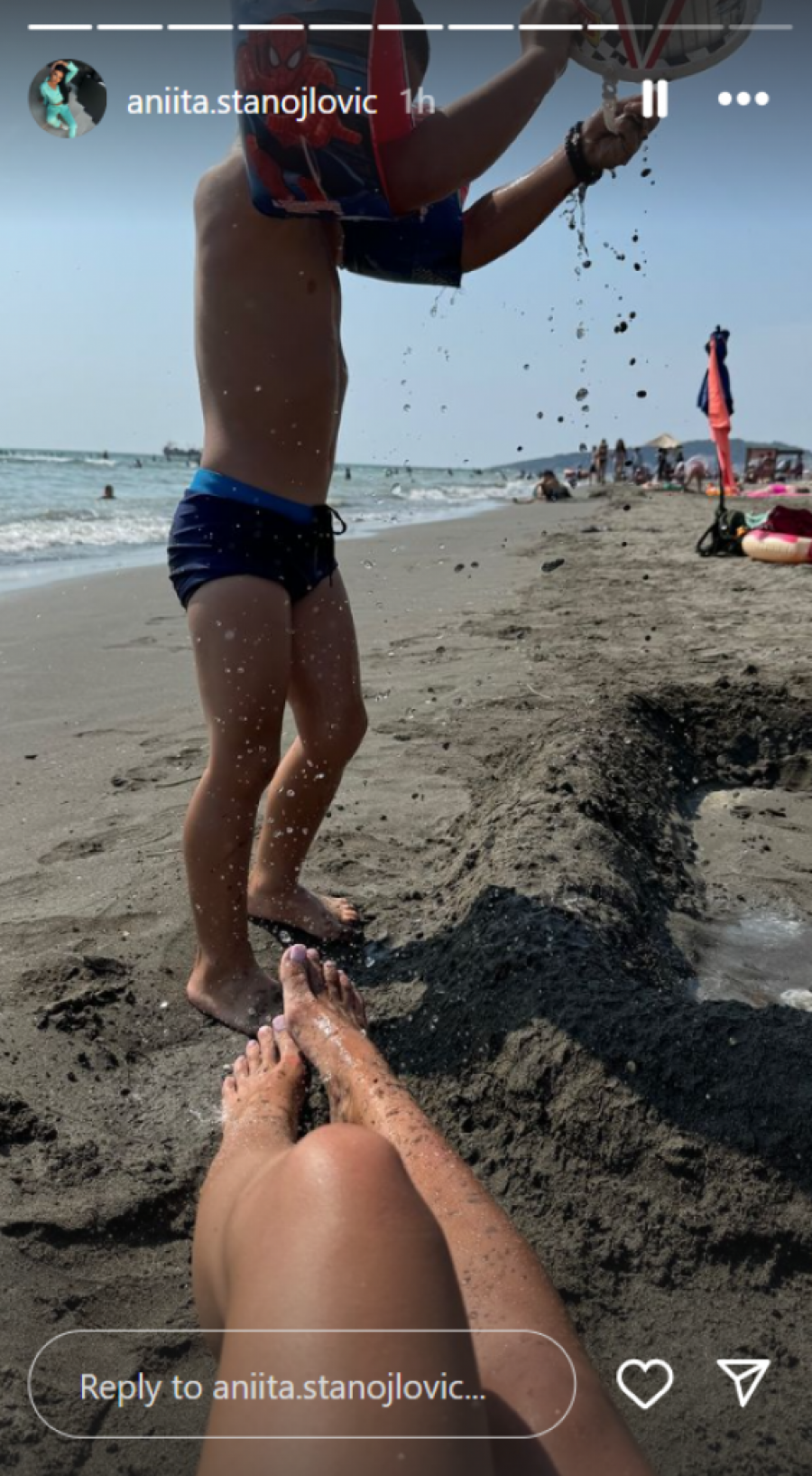 Njeni storiji su zbog takvih objava sve praćeniji, a započeli s prikazivanjem zajedničkih trenutaka sa sinom Aleksejem, uključujući njihove zajedničke aktivnosti u luna parku. Međutim, ono što je privuklo najviše pažnje su upravo fotografije i snimci malog naslednika na plaži u Čanju, što je dodatno uzbudilo njene obožavaoce, te se ovih dana ta tema u javnosti često komentariše.