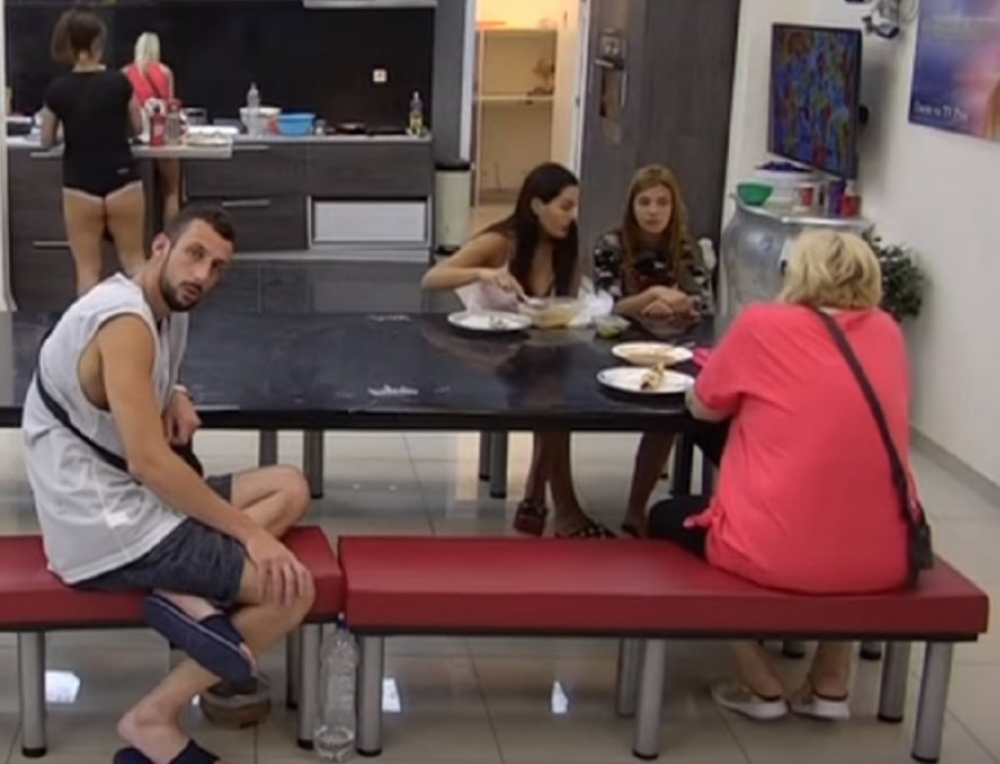 Foto: youtube.com/Zadruga OfficialOvo su prve primetile Kija Kockar, Ana Korać i Zorica Marković koje su ručale u trpezariji kada se reklama pojavila. Kako je to ugledala Kija je skočila: